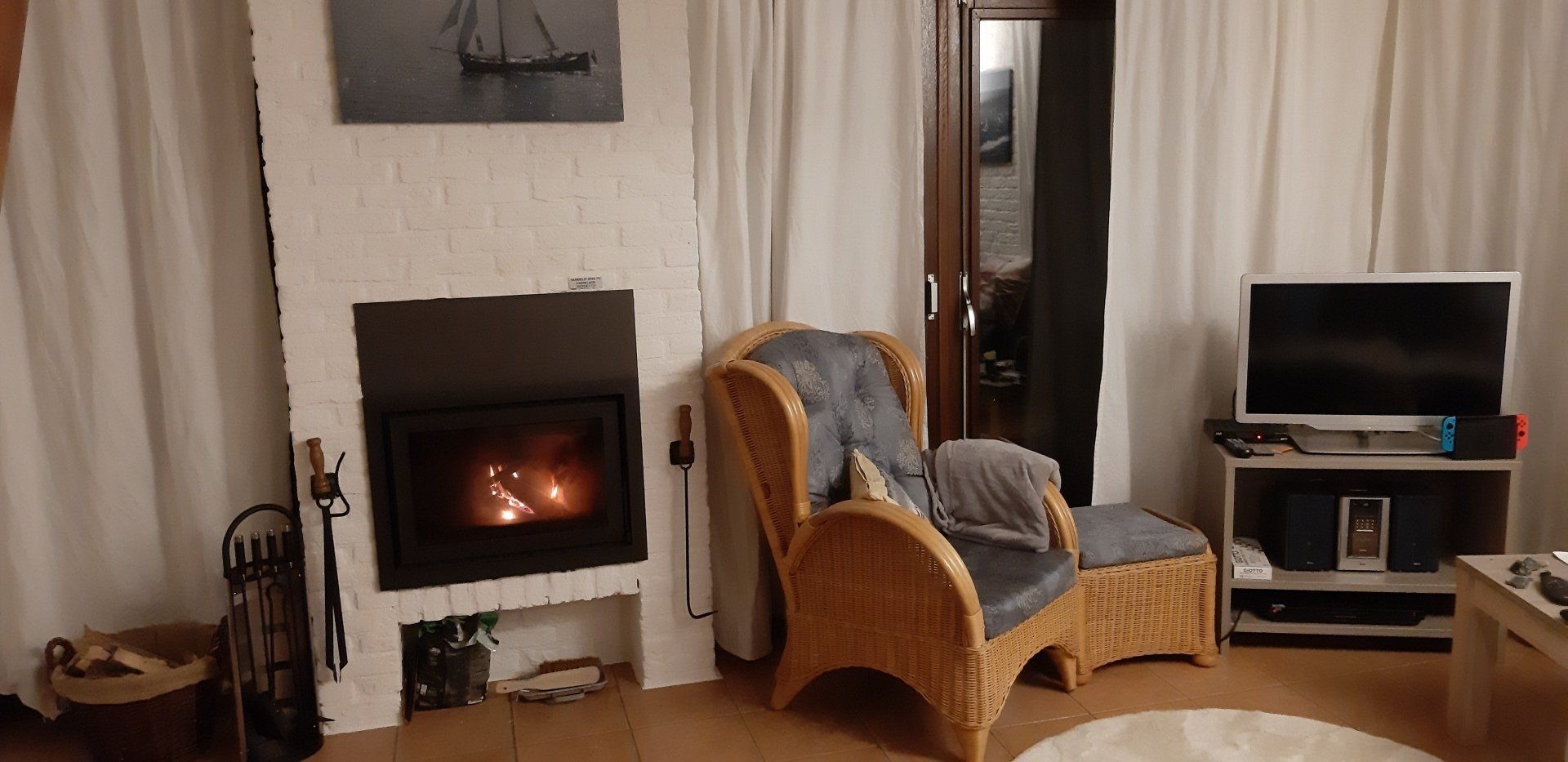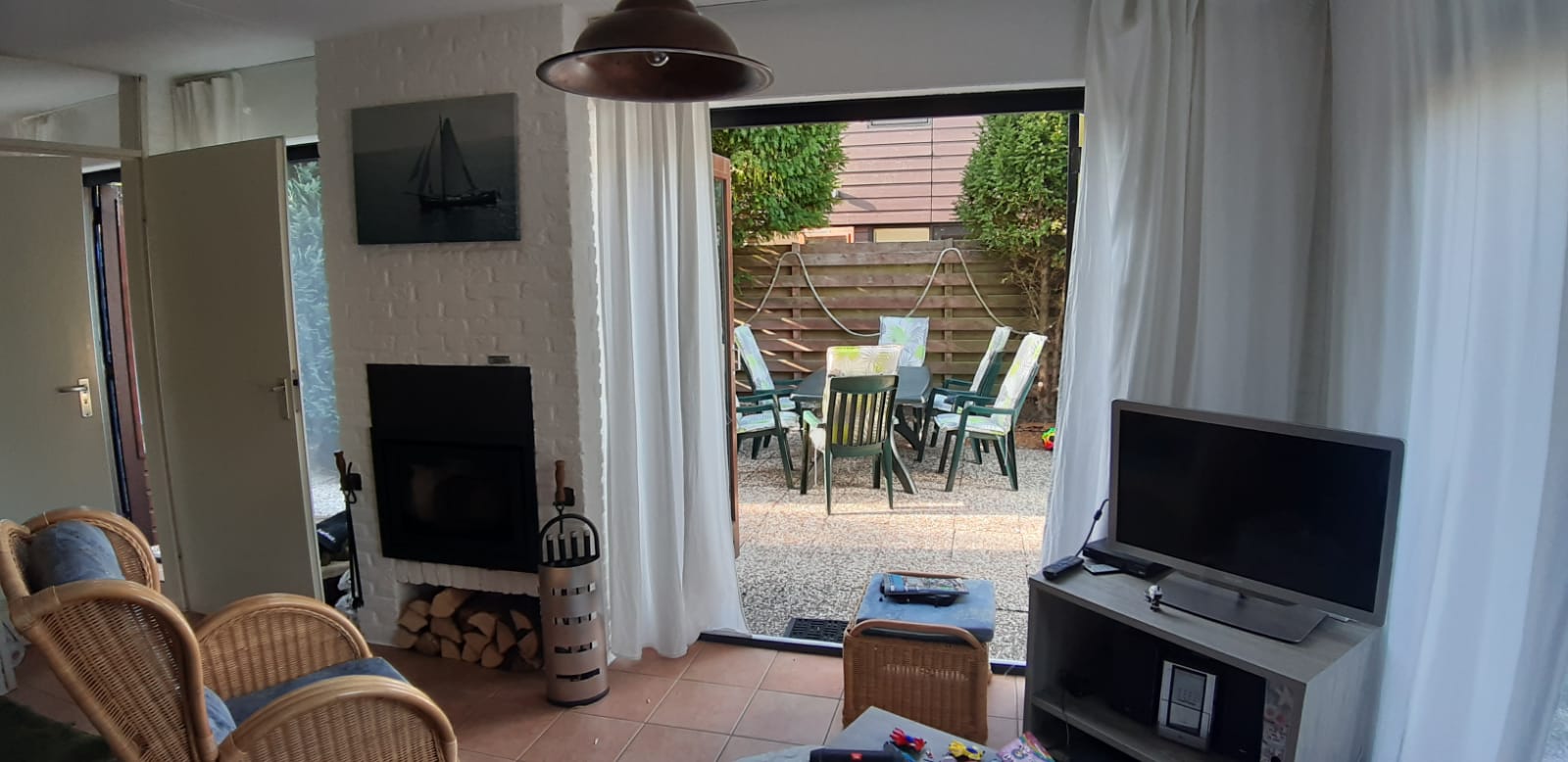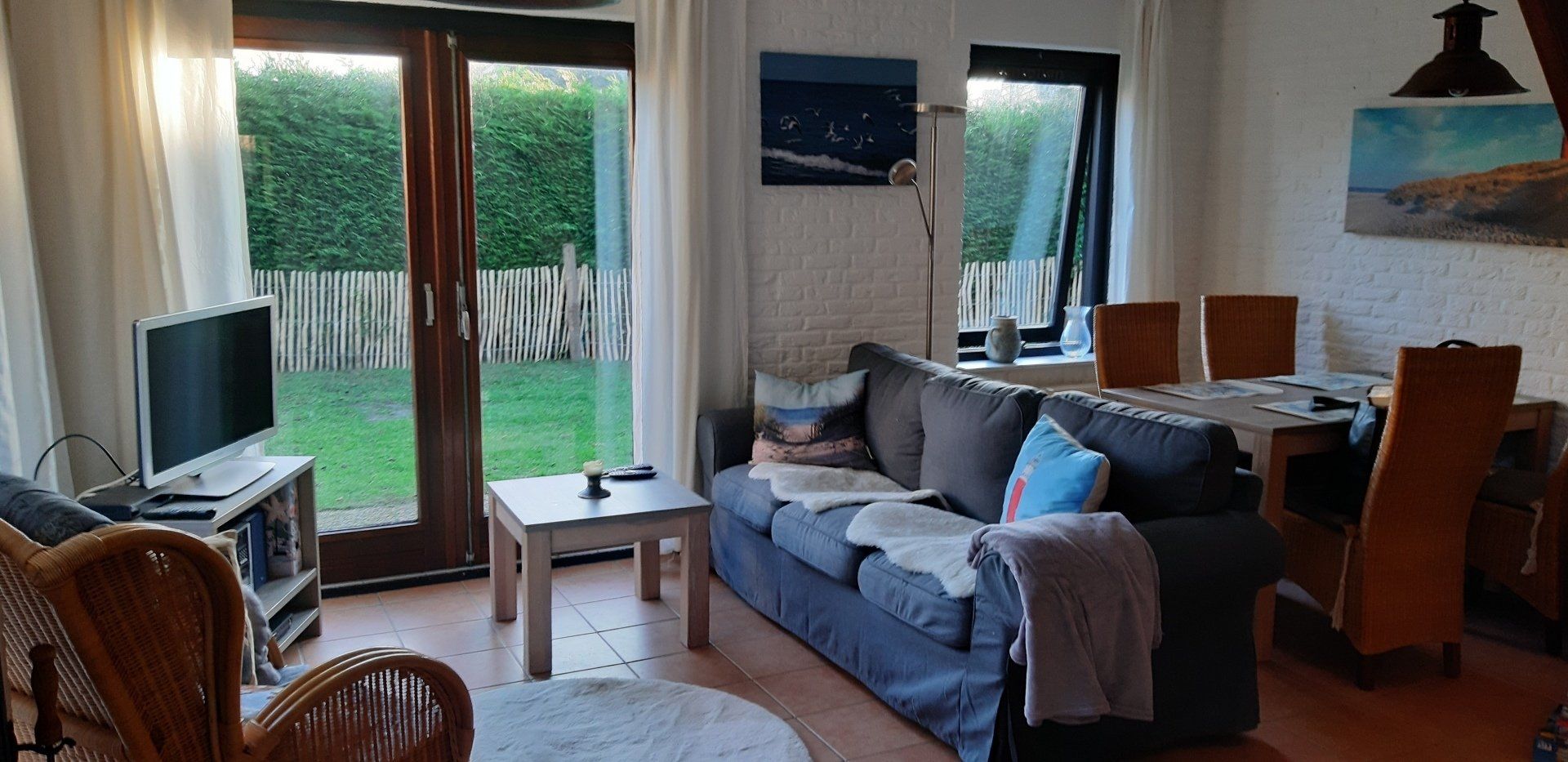 - ein sehr gemütliches helles Wohn-Esszimmer mit direktem Gartenzugang, Kamin, TV,Sat